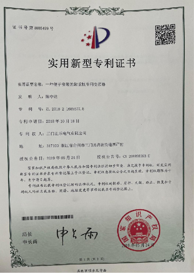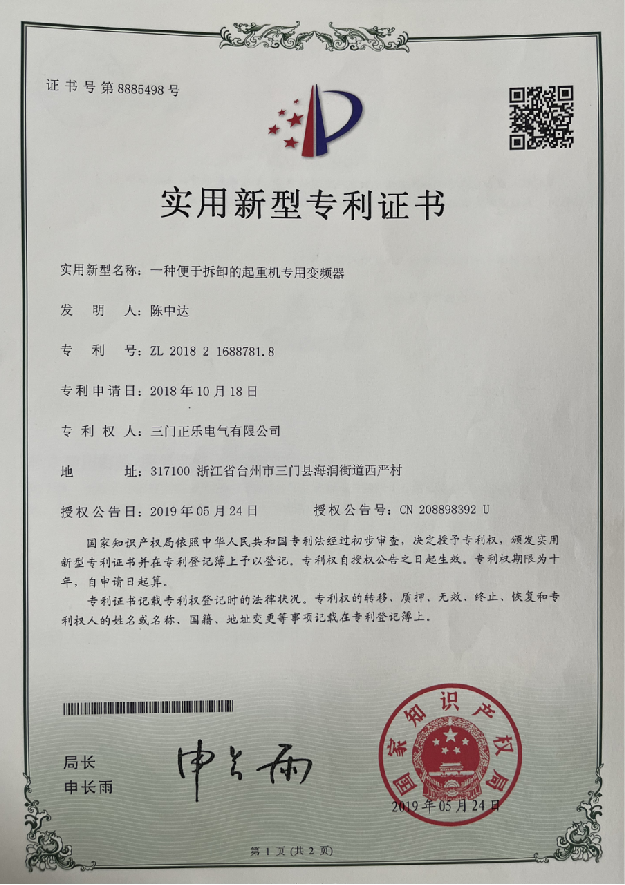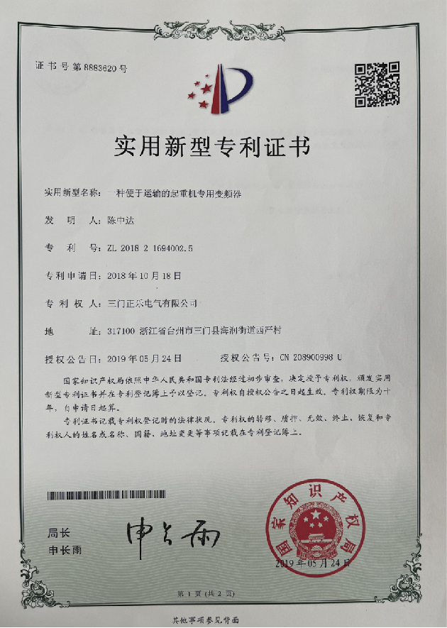 | Numele certificatului: | A Special Frequency Converter for Cranes with Easy Disassembly |